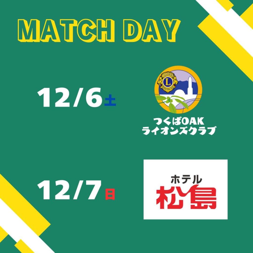12月6日(土)7日(日)はホームゲームつくば大会 年内最後のホームゲームです。