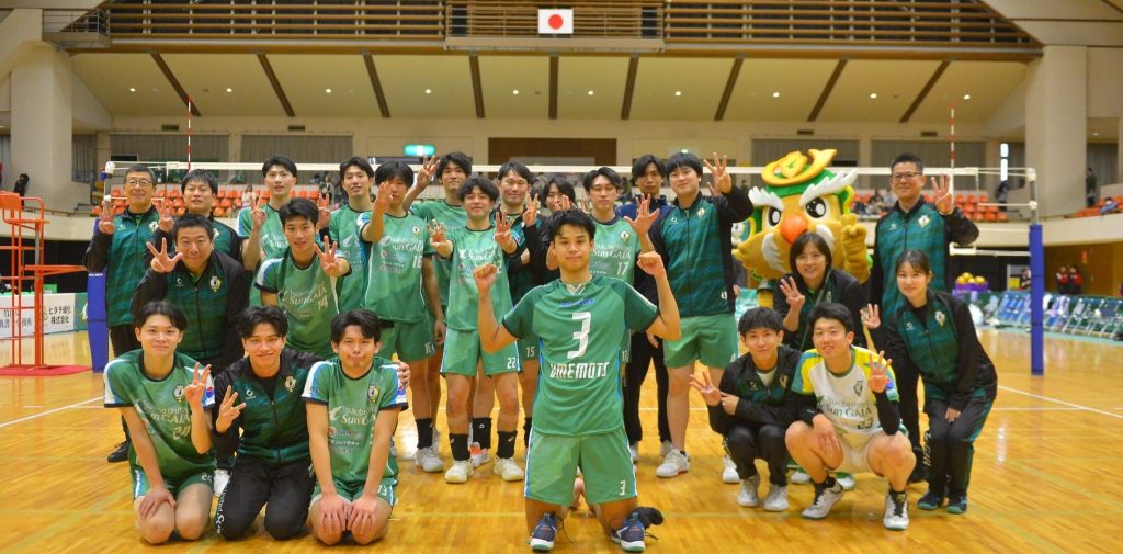 最終セットも緊迫した場面が続きましたが、ホームの大応援の後押しもあり、接戦を勝利することができました。